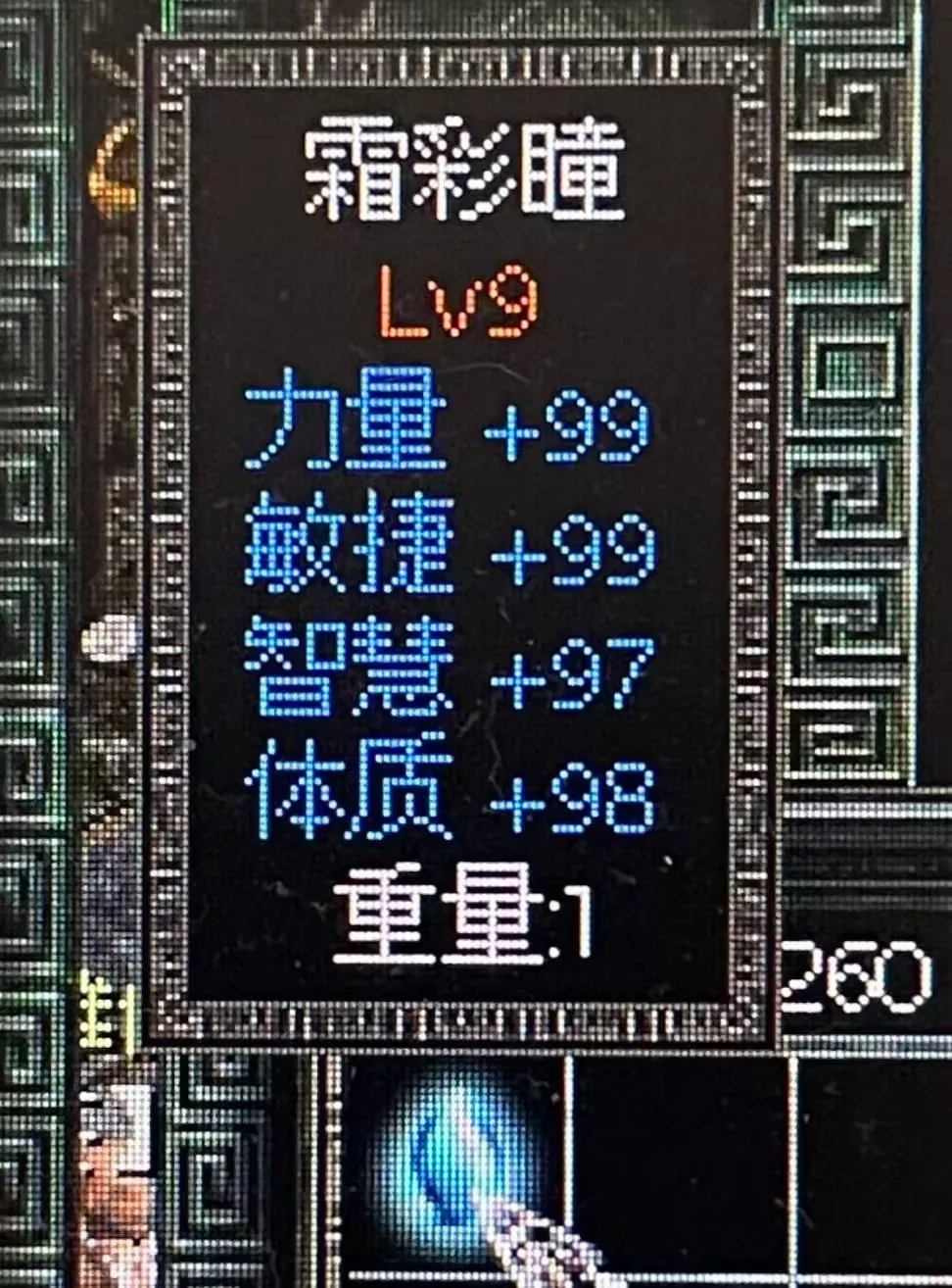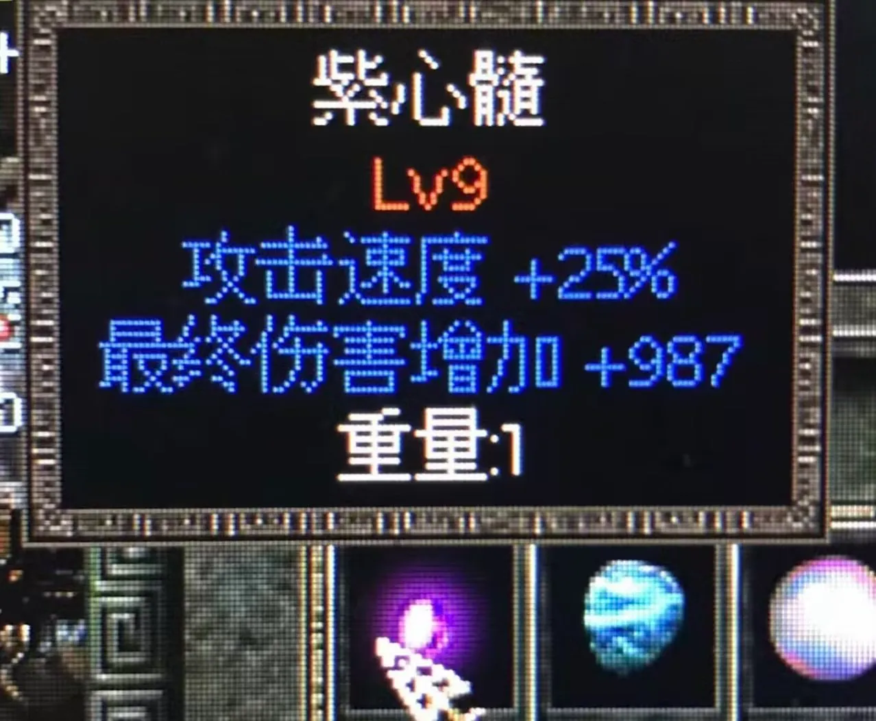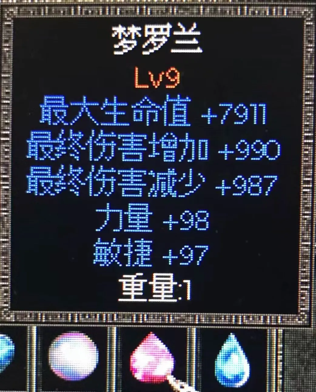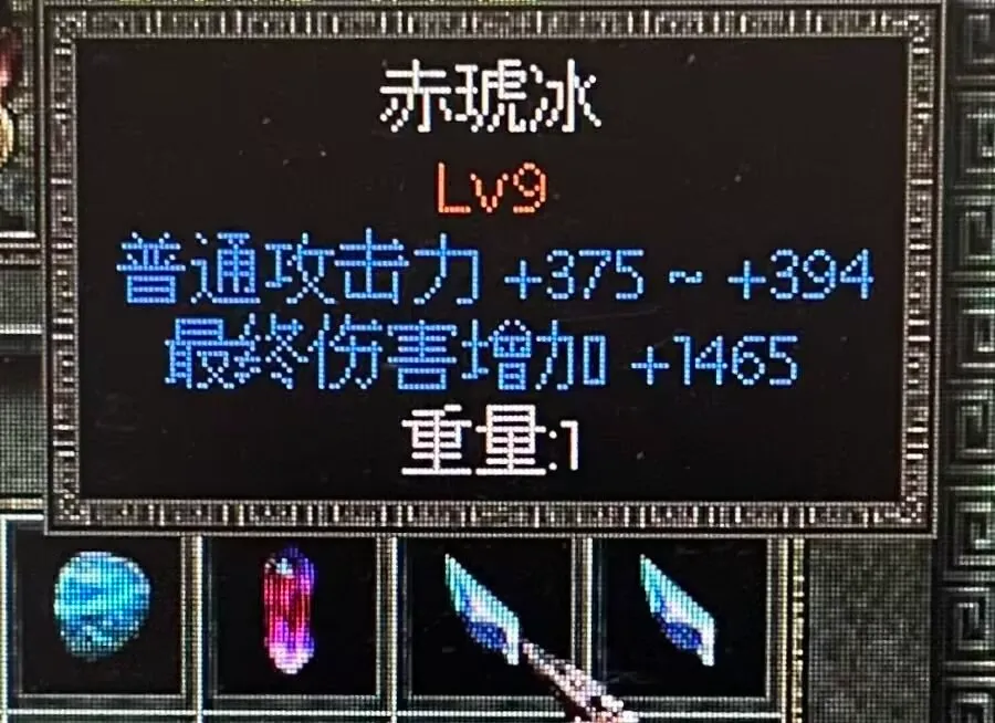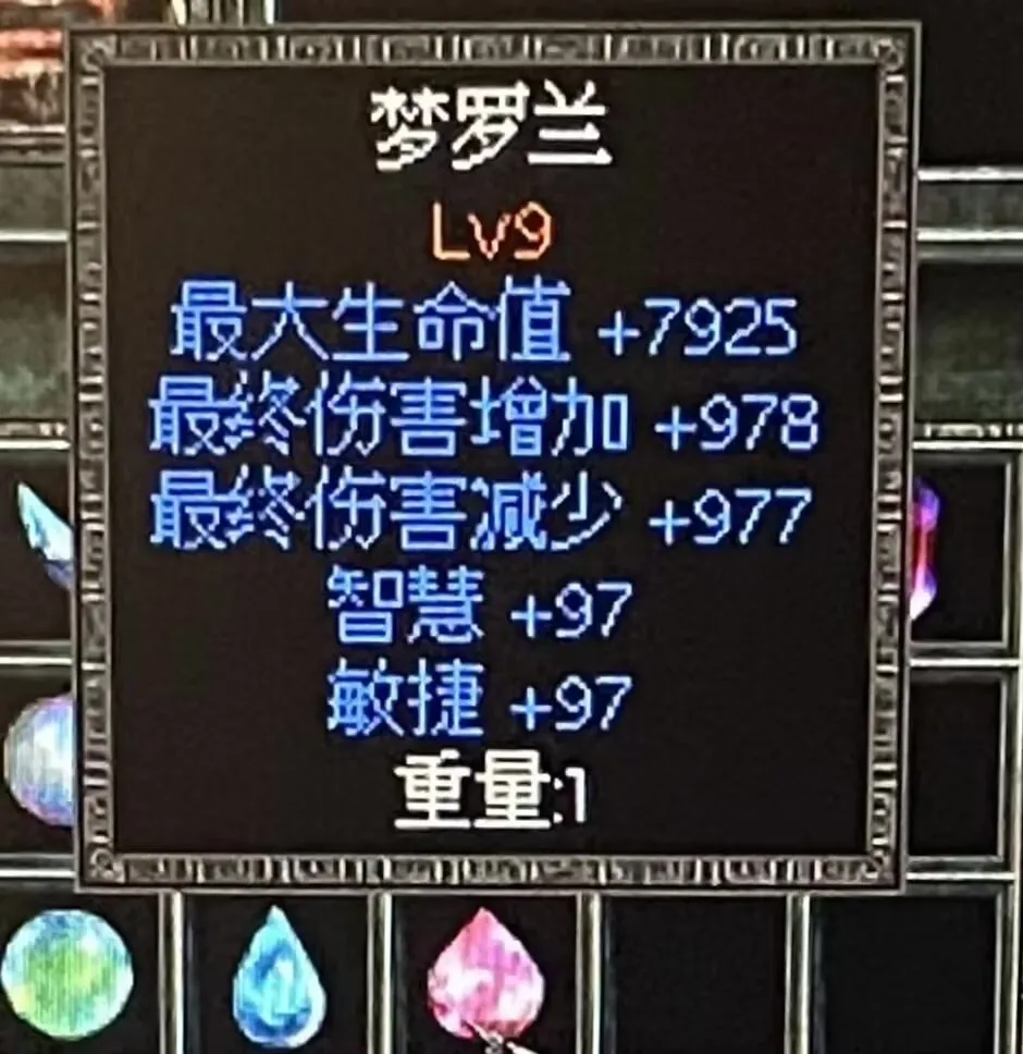 传奇宝石升为一级,可以看到其属性