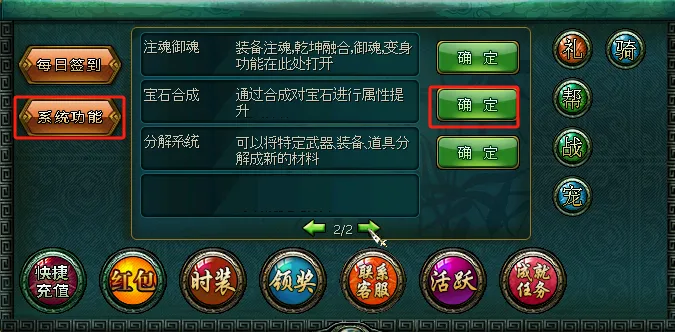 快捷键“T”系统功能“宝石合成”“五行宝石合成”
