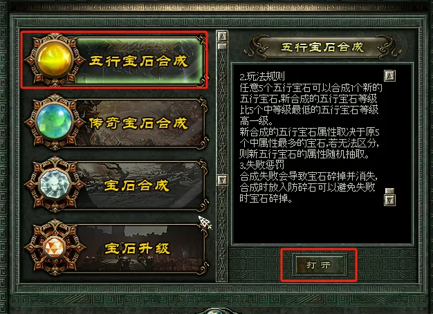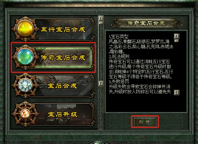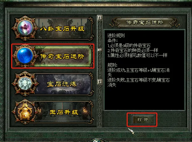 2.升级传奇宝石的时候,五行宝石需要高于传奇宝石的等级