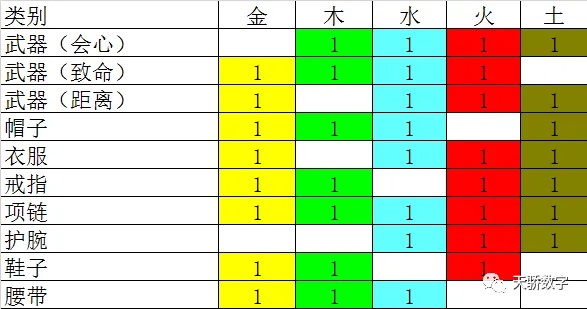 1个金宝石+1个木宝石+1个水宝石+1个火宝石+1个土宝石=1个高级的随机属性宝石