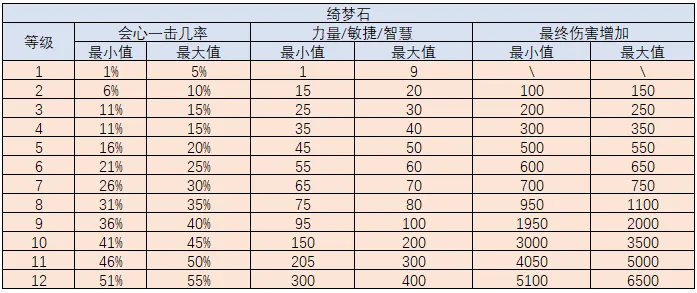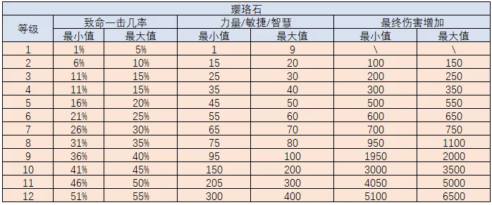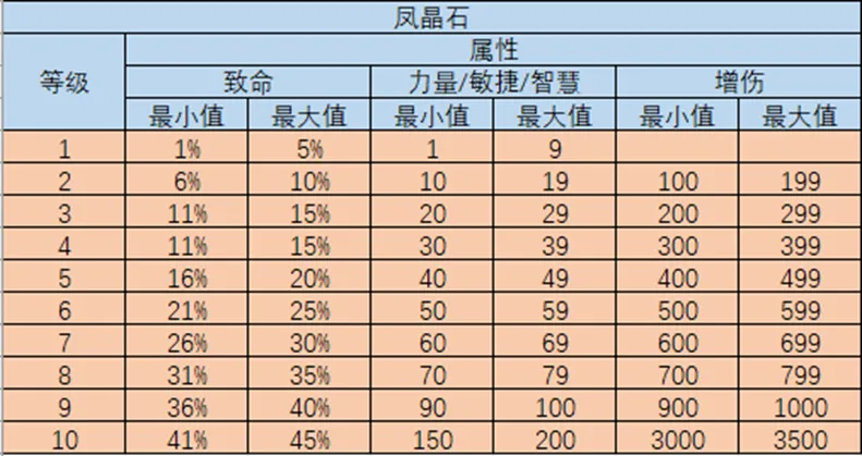 传奇宝石属性区间
