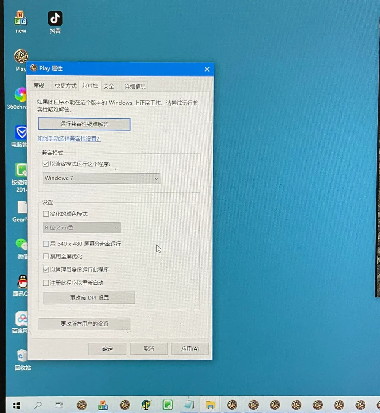 1、新天骄客户端的设置,把鼠标放到桌面天骄客户端上面,点鼠标右键改一下属性。把里面兼容模式win7和管理员运行前面打√,在按确定。