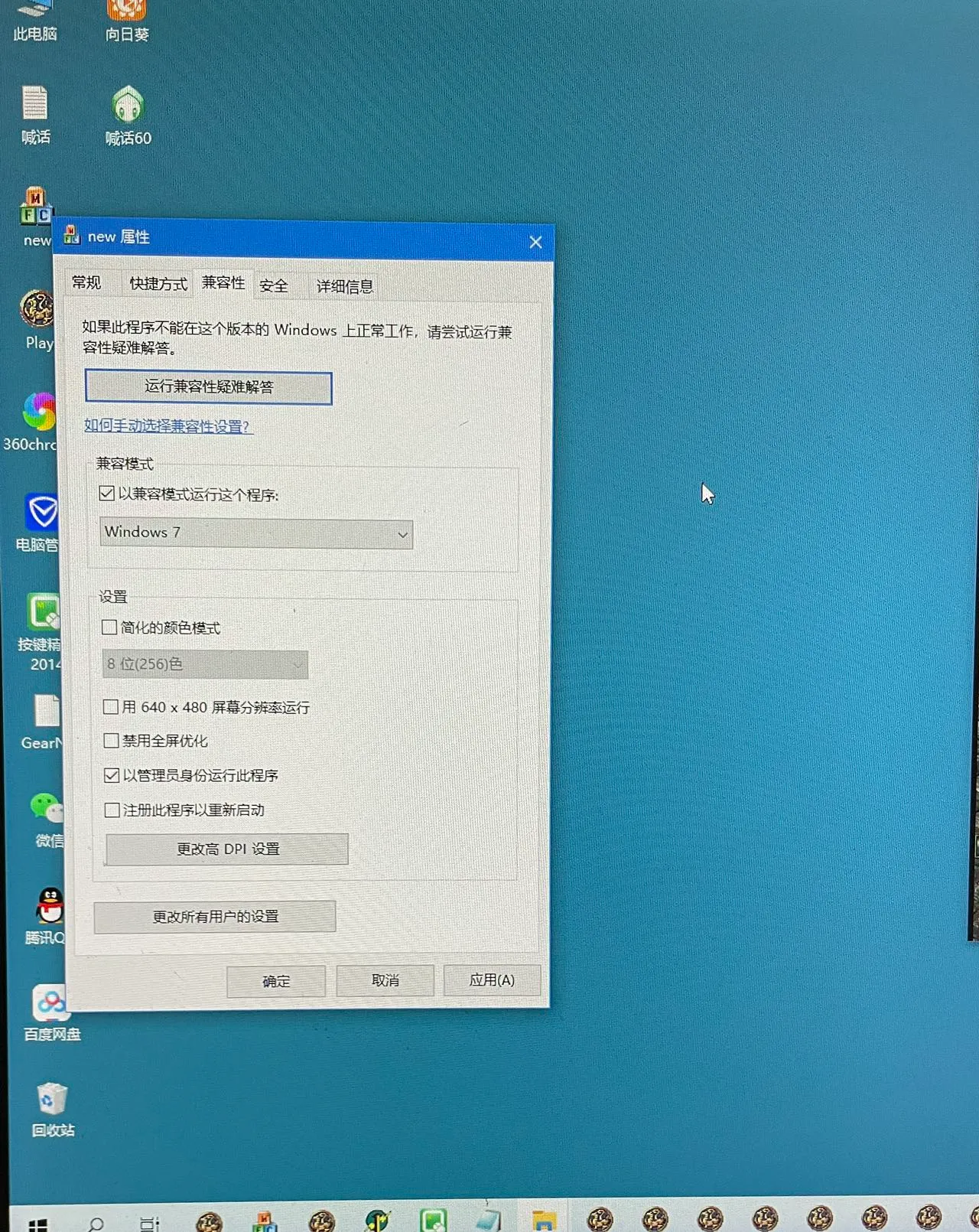 最后2个设置都改完, 重起一下电脑。再操作一遍,要还是呼不出外挂,就把这2个里面选项win7 换成XP选项,再试一下就可以呼出来了。要把电脑里面杀毒软件要关掉,比如360杀毒软件。