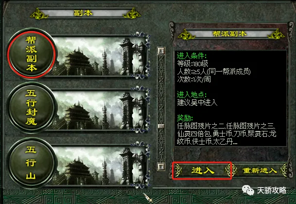 组队进入,最低5个人,最高9人。必须是同一个帮派的成员。