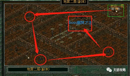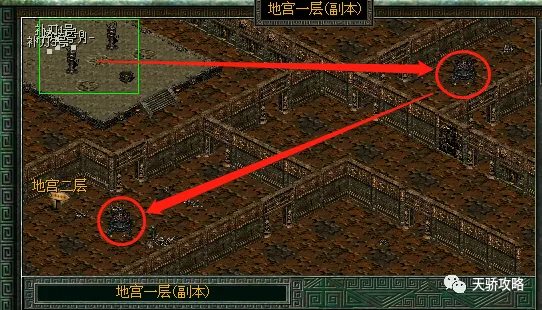 3、进入地宫二层,按地宫二二层地图,激活祭坛,击杀火焰兽小boss和小怪。