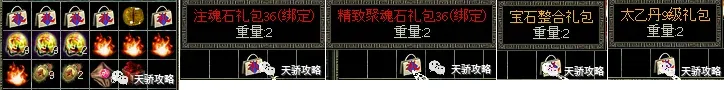 注魂石礼包打开得到4组36个注魂石。(注魂石礼包绑定,但是打开后注魂石不绑定)