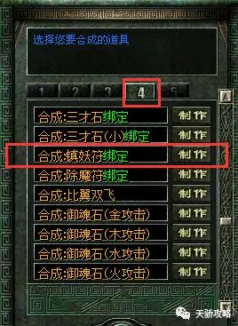 点击制作,打开镇妖符制作界面,点制作,得到镇妖符。