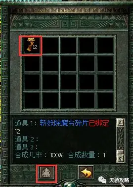 背包带12个斩妖除魔令碎片,点确定,完成制作,得到斩妖除魔令。