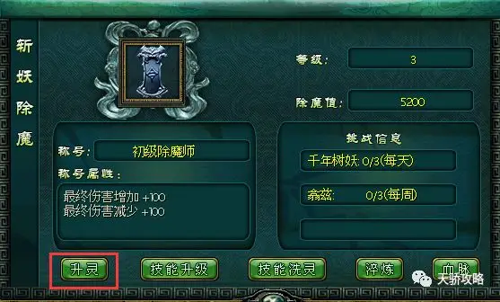 斩妖除魔令可以通过升级,得到更强大的属性和更强大的技能。