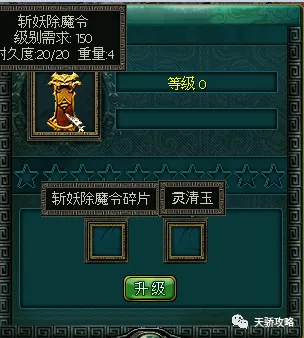 下面放入相应的道具,点击升级,完成对斩妖除魔令的升级。