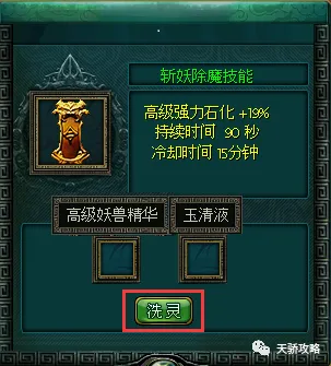 当我们需要对斩妖除魔令技能的攻击状态进行转换时,我们就需要对斩妖除魔令技能进行洗灵操作,比如强力眩晕换强力石化。