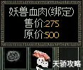 妖兽血肉1个,斩妖除魔升级道具材料。