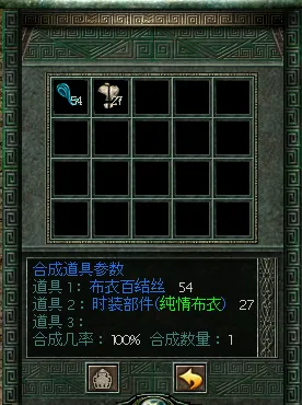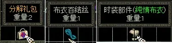 分解礼包可以开出布衣百结丝、时装部件(纯情布衣)
