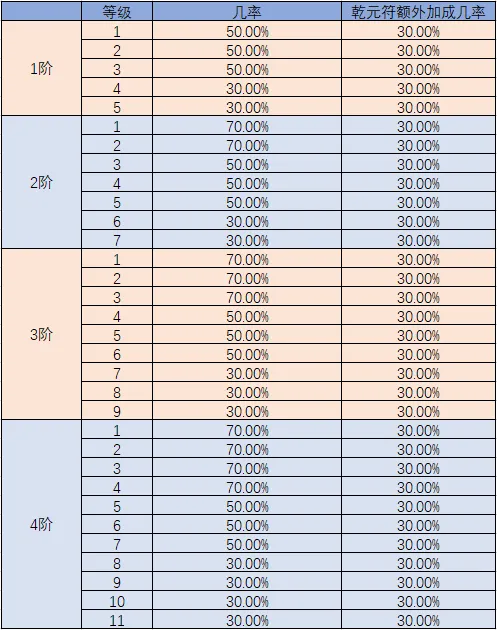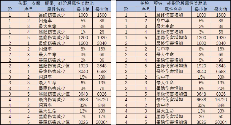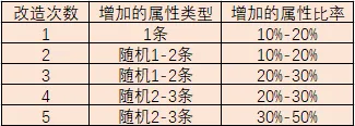 ※每次改造成功时,辅装备筛选出的部分属性将增加至主装备上,随着改造等级增加,辅装备增加的属性比率也不同,详情如下: