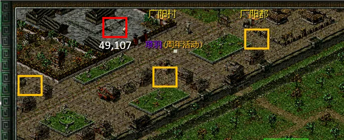 想完成杀死项羽任务,就把3个黄框标记的项羽假身杀了, 再杀红框标记的项羽真身(不杀3个假身,真身不刷新)