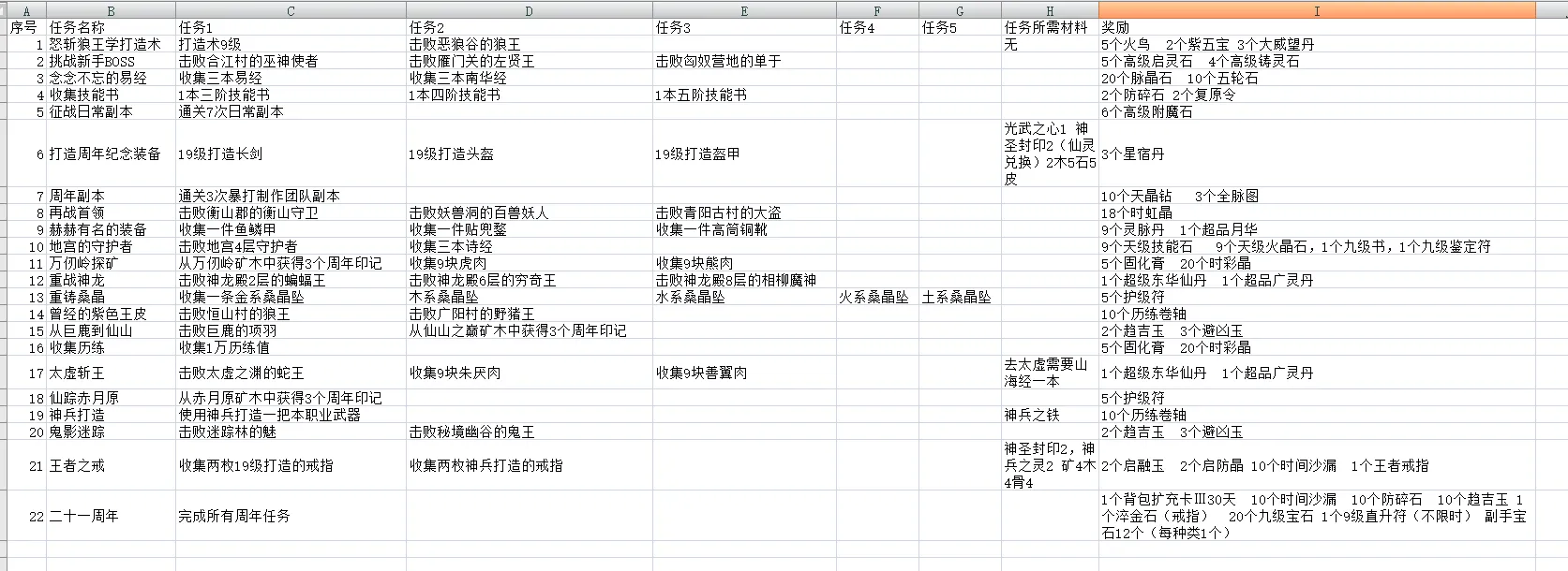 22.完成所有个任务送下面 1个背包扩充卡30天 10个时间沙漏 10个防碎石 10个趋吉玉 1个淬金石(戒指)20个九级宝石 1个9级直升符(不限时)副手宝石12个